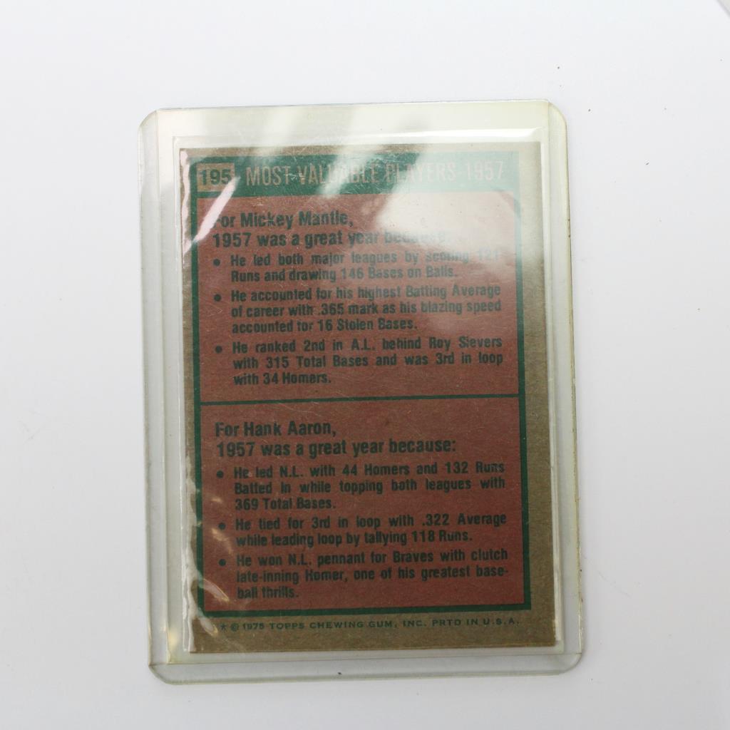 1975 Topps 1957 MVP Mickey Mantle & Hank Aaron 25th Anniversary Baseball Card
