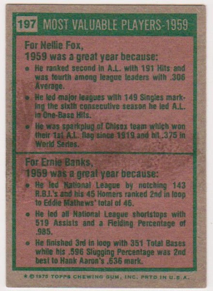 1975 Topps Nellie Fox/Ernie Banks #197 Card - HOF'ers