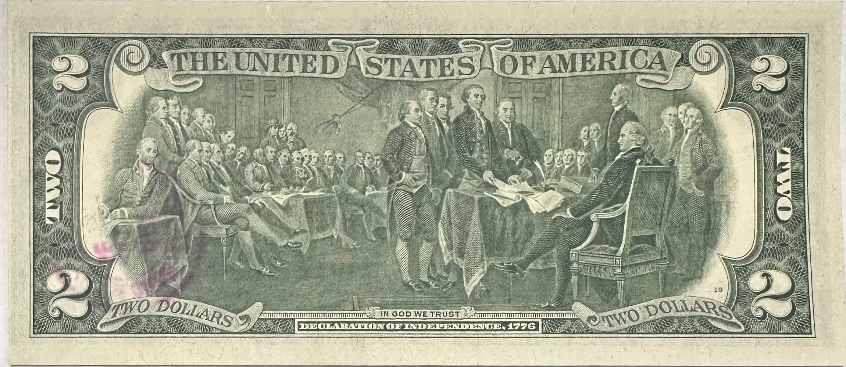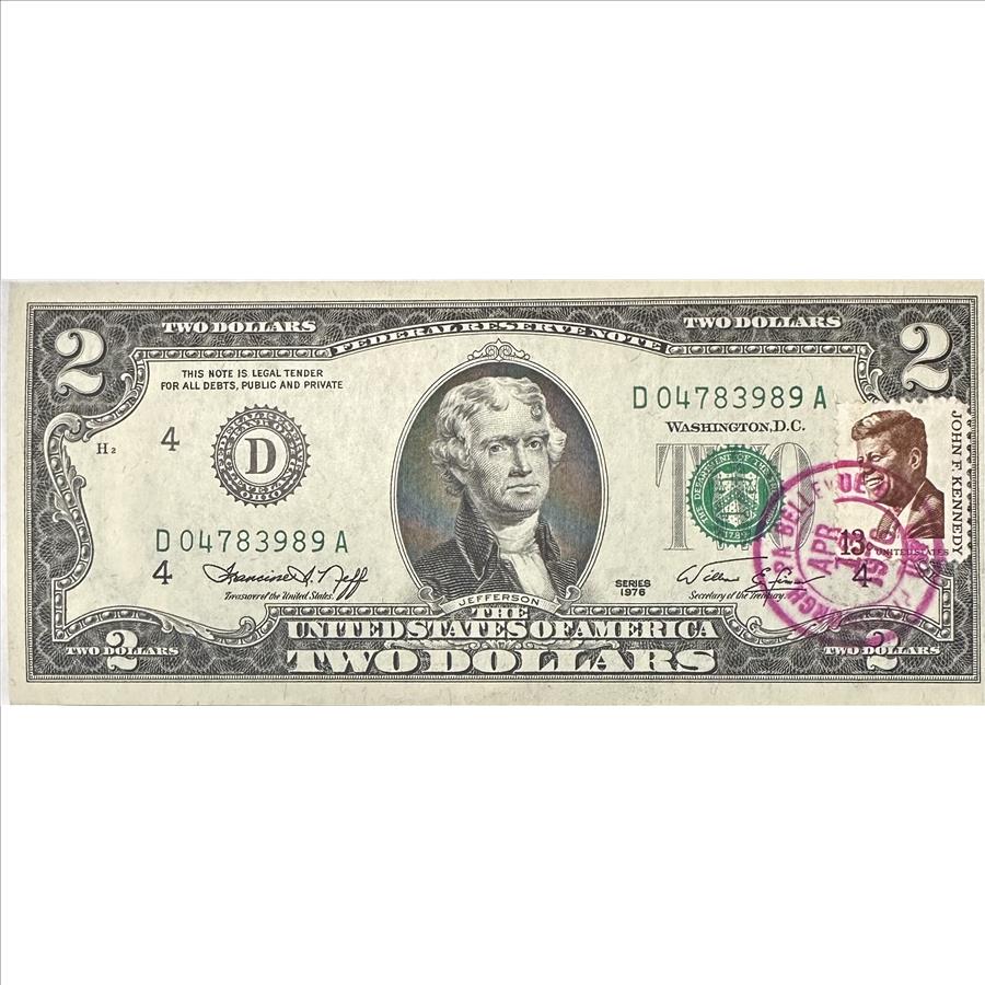 >1976 Series Crisp Two Dollars ($2) Federal Reserve Note - First Day Issue Pittsburgh, PA with John F Kennedy Stamp