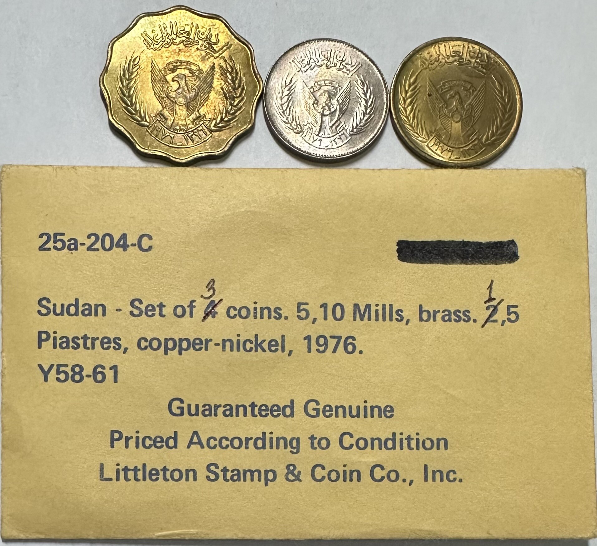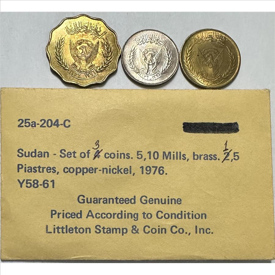 1976 Sudan 5 & 10 Mills and a 5 Piastres - Littleton Stamp & Coin Company - and 1941 Netherlands Silver 10 Cents - 4 Coins