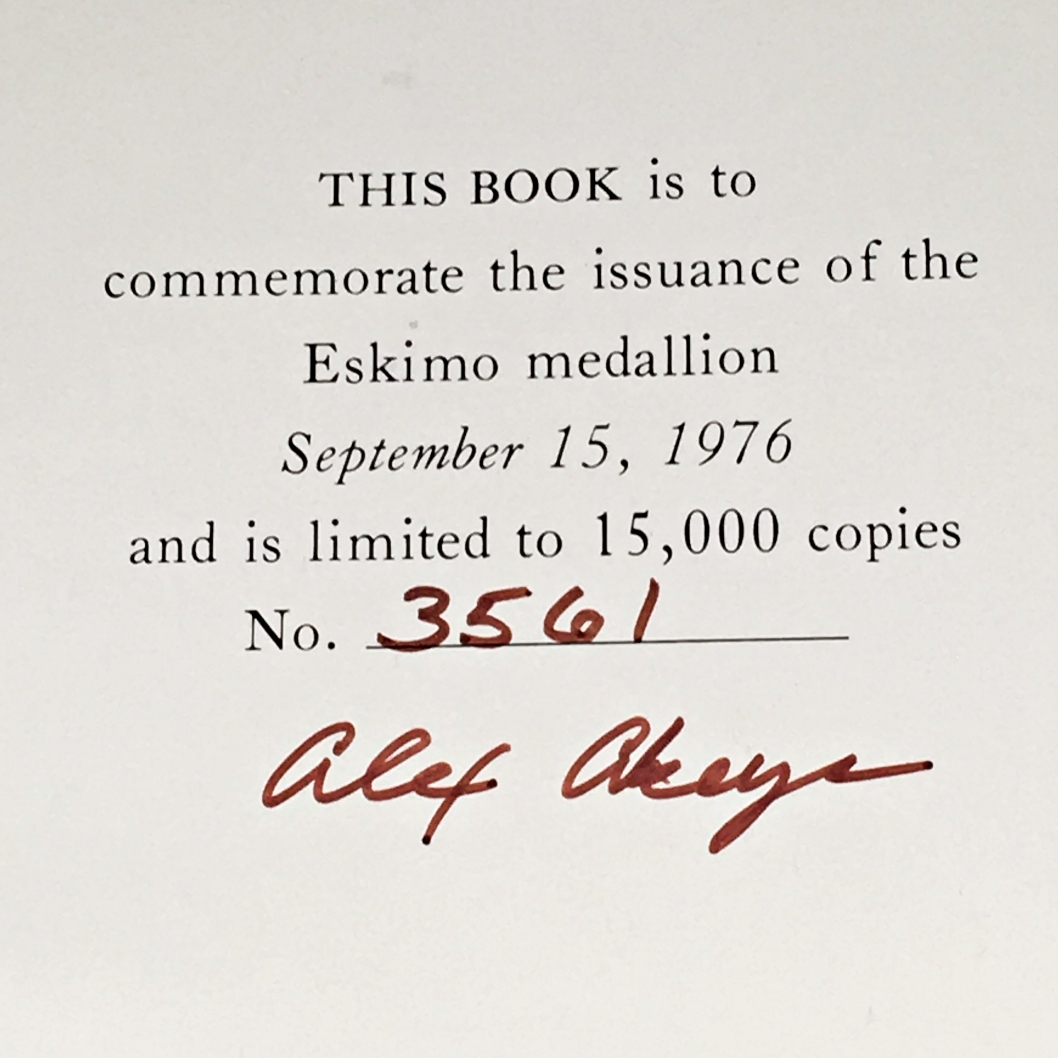 1976 The Eskimo People of Savoonga History, .80oz .999 Silver Medallion and Signature of the Tribal Chairman
