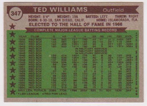 PropertyRoom.com's trusted merchant, Sports Collectibles, presents this online auction for the above 1976 Topps Ted Williams #347 Card.