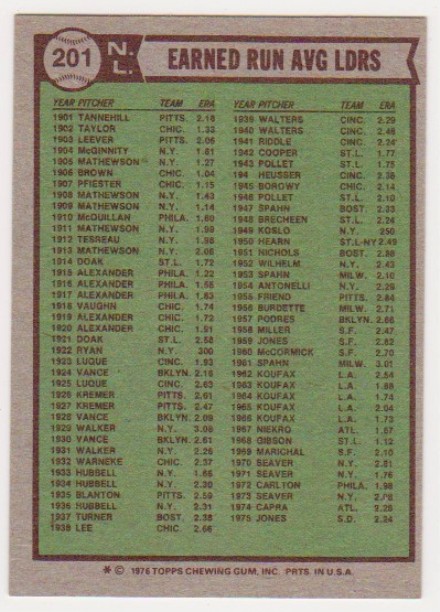 1976 Topps Tom Seaver/Randy Jones/Andy Messersmith #201 Baseball Card
