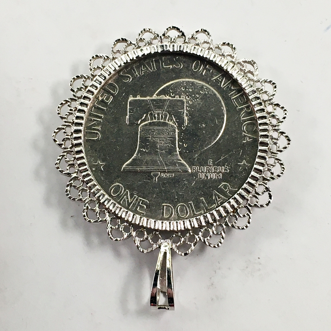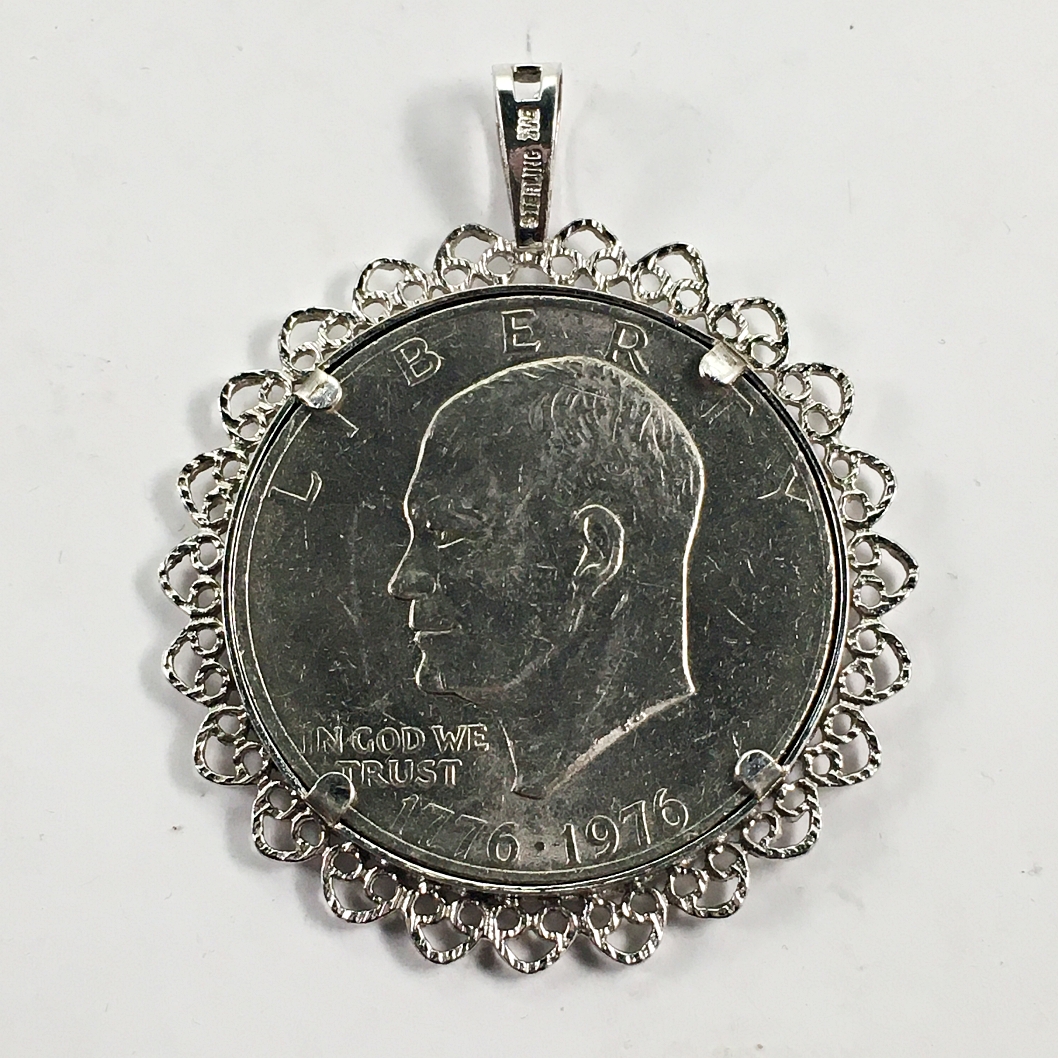 1976 US Bicentennial Clad Eisenhower Dollar*In Nice Sterling Silver Bezel