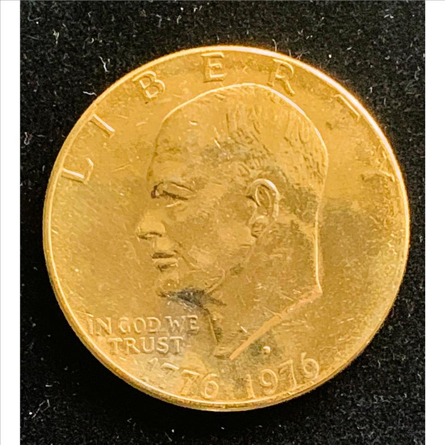 1976-D EISENHOWER UNCIRCULATED $1 DOLLAR GOLD LAYERED COIN, BRIGHT LUSTER