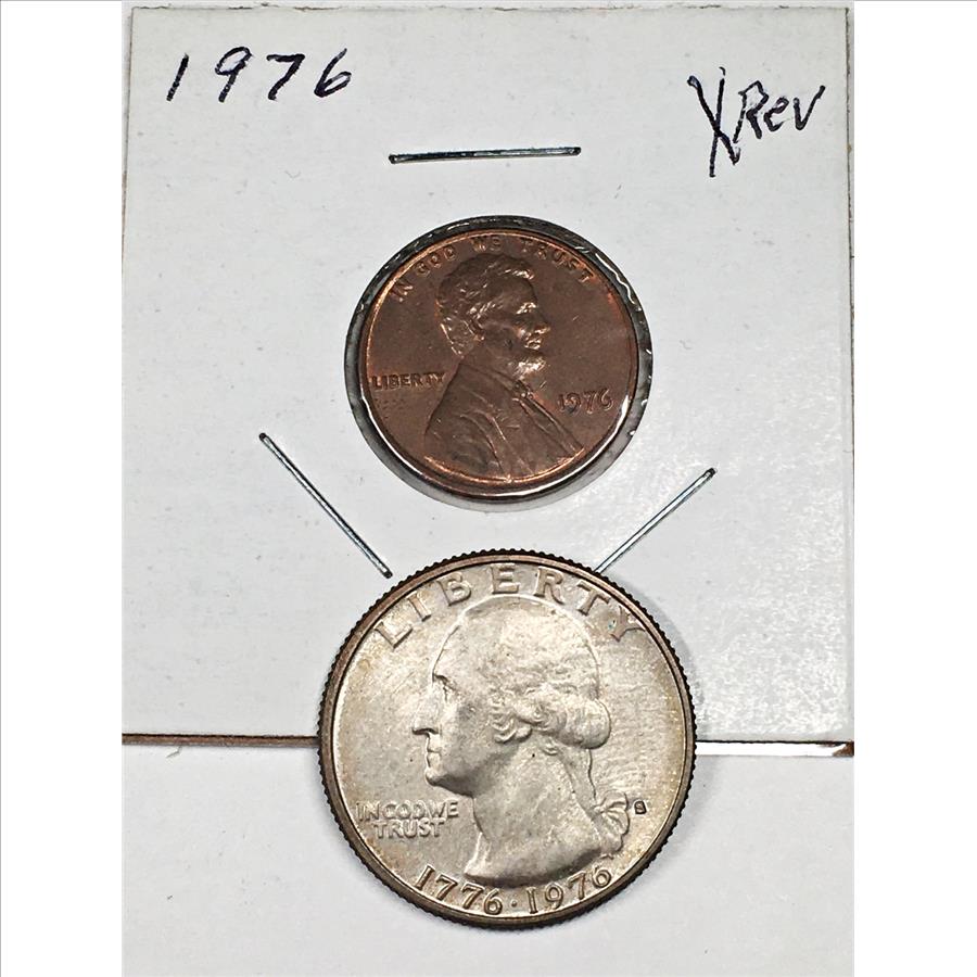 1976-S US Bicentennial Washington Quarter and 1976 US Bicentennial Lincoln Head Memorial Cent*High Grade