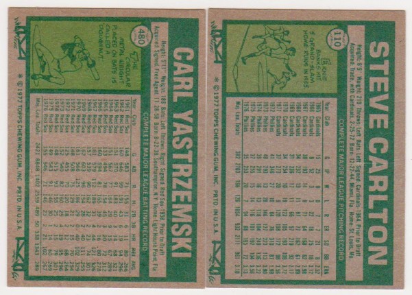 1977 Topps Carl Yastrzemski #480 + Steve Carlton #110 Card Pair - HOF'ers