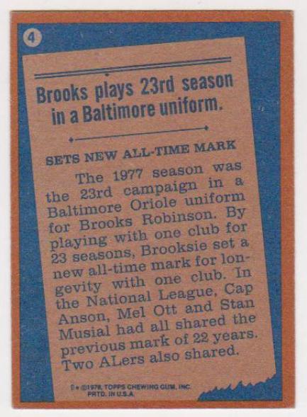 1978 Topps Brooks Robinson #4 Card - HOF'er