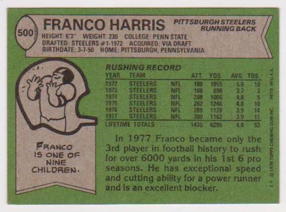 PropertyRoom.com's trusted merchant, Sports Collectibles, presents this online auction for the above 1978 Topps Franco Harris #500 Card.
