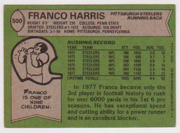 1978 Topps Franco Harris #500 Card - HOF'er