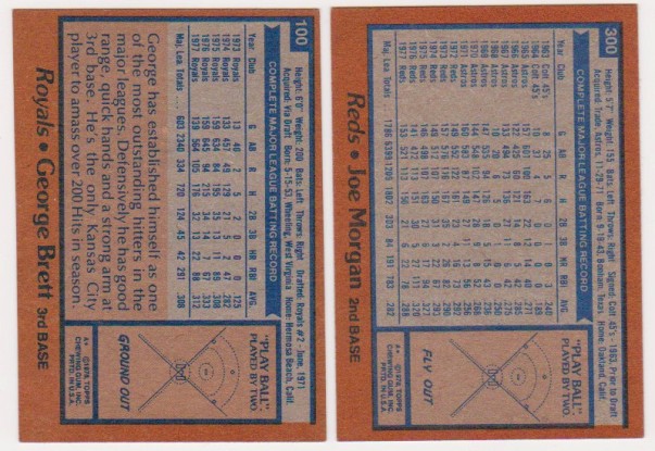 1978 Topps George Brett #100 + Joe Morgan #300 Card Pair