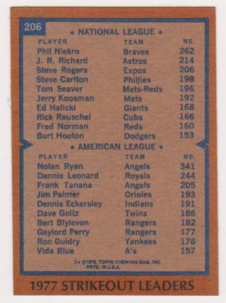 1978 Topps Nolan Ryan/Phil Niekro #206 Card - HOF'ers