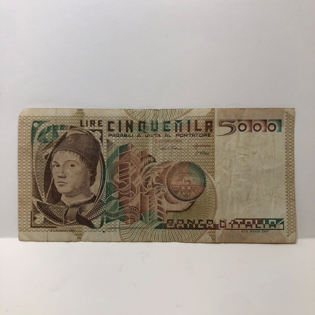 1979 Bank of Italy 5000 Lire Note in Protective Sleeve