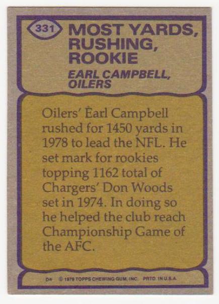 1979 Topps Earl Campbell #331 Rookie Year Card - HOF'er