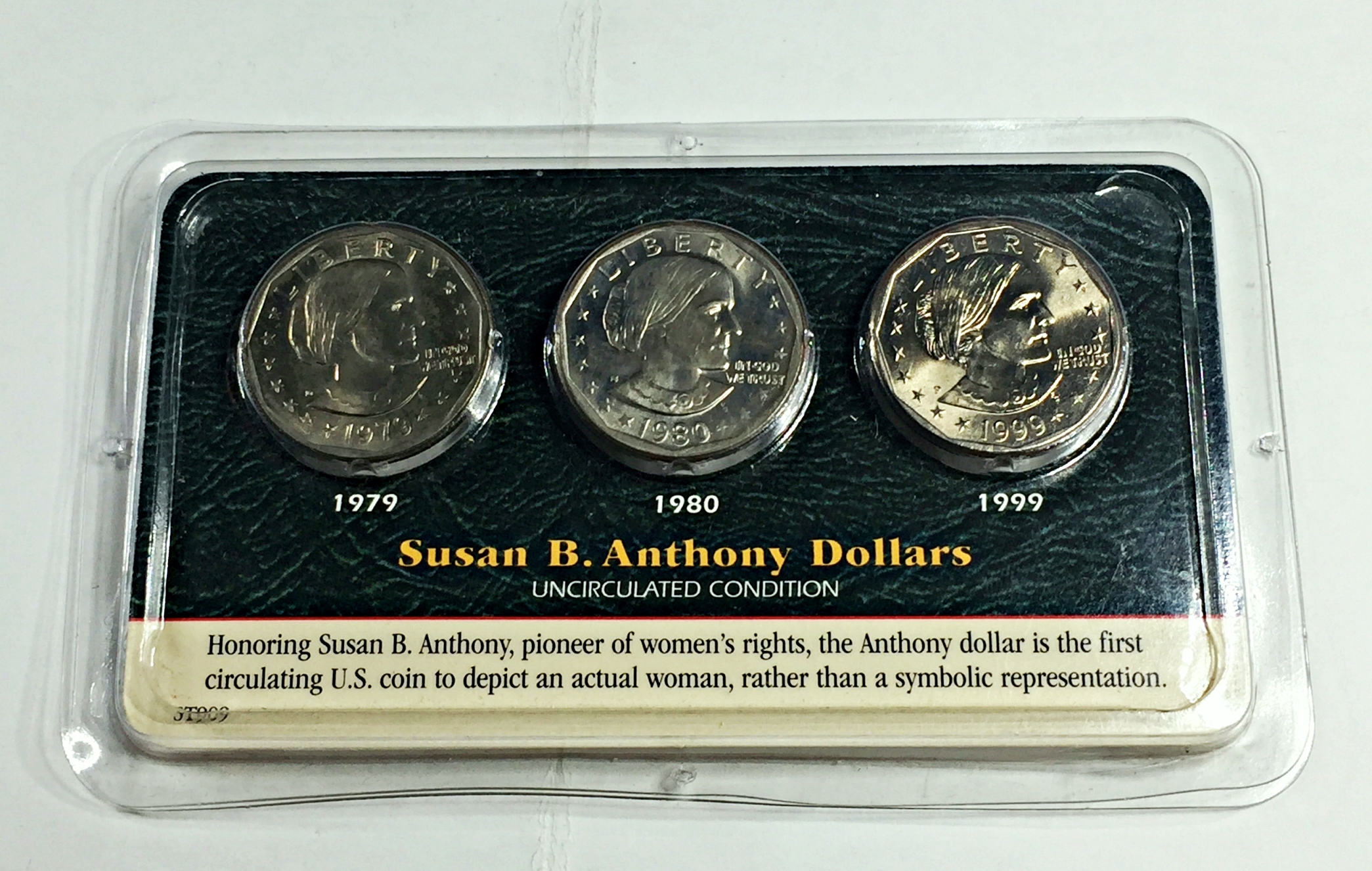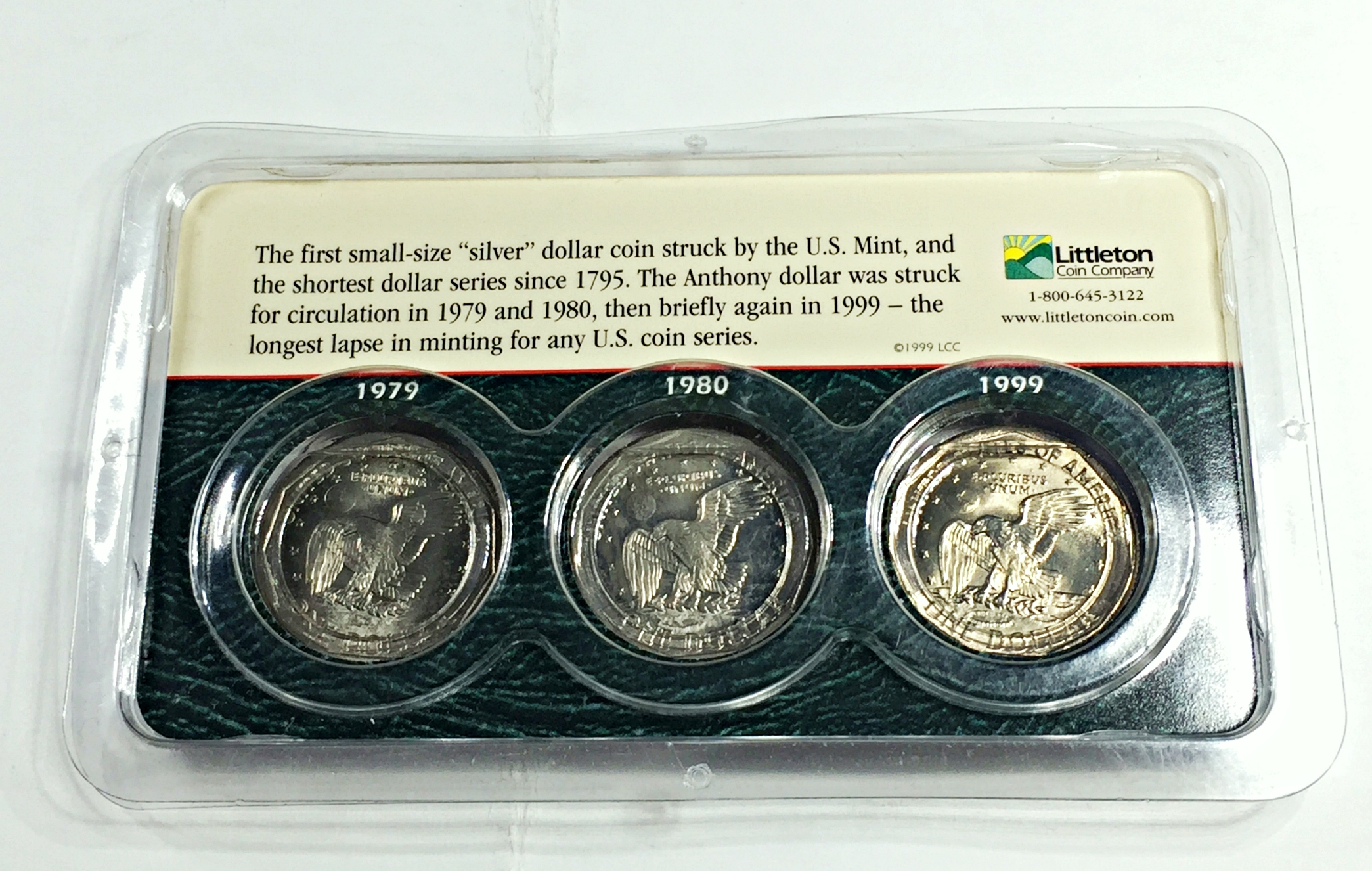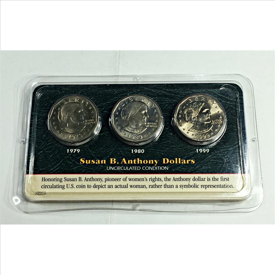1979-D, 1980-S and 1999-P Susan B. Anthony Commemorative Dollars*High Grade*In Custom Holder From Littleton Coin Company