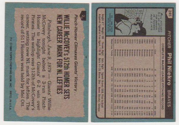 1980 Topps Willie McCovey #2 + Phil Niekro #245 Card Pair