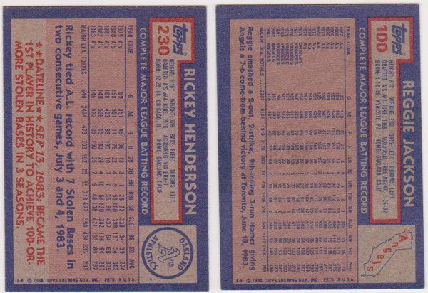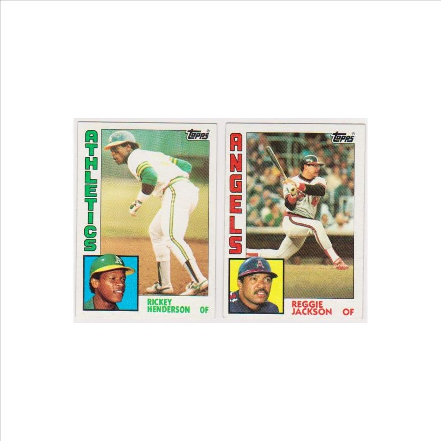 1984 Topps Rickey Henderson #230 + Reggie Jackson #100 Card Pair