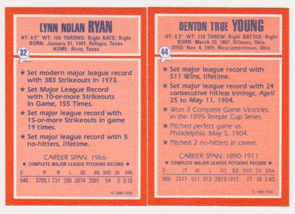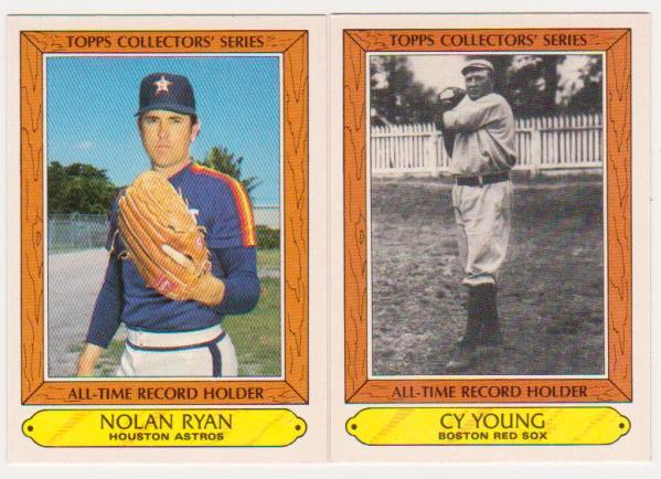 1985 Topps Collectors Series Nolan Ryan #32 + Cy Young #44 Card Pair - HOF'ers