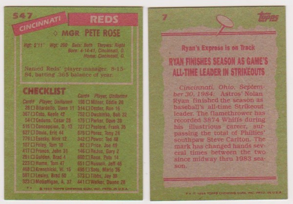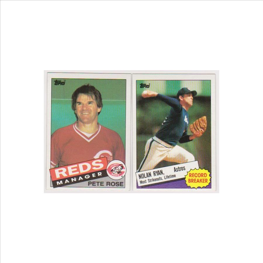 1985 Topps Nolan Ryan #7 + Pete Rose #547 Card Pair