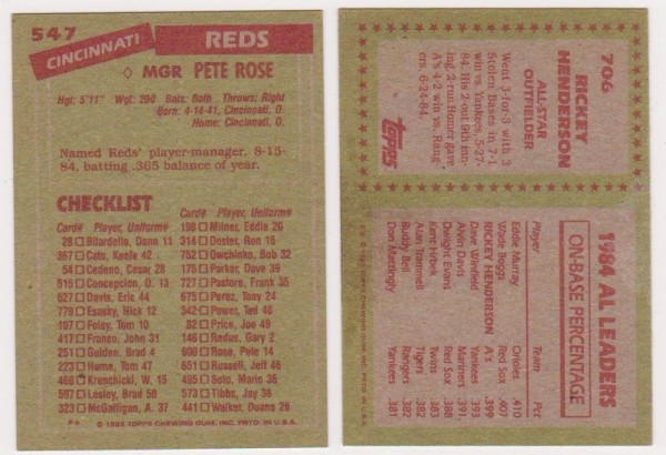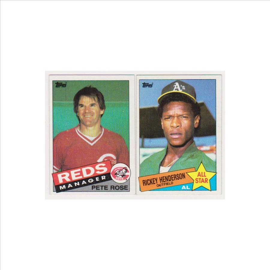 1985 Topps Pete Rose #547 + Rickey Henderson #706 Card Pair