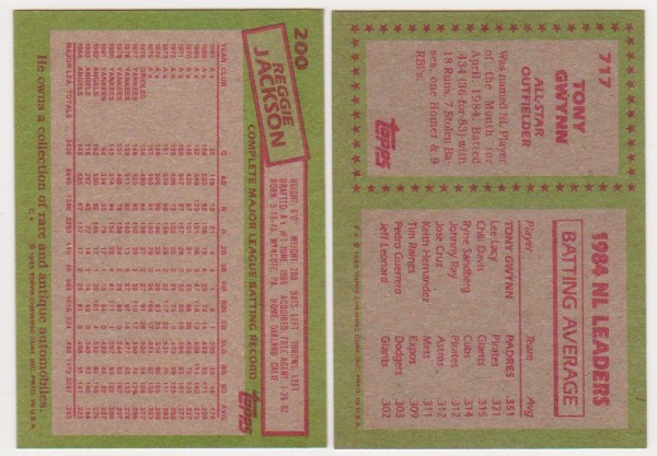 1985 Topps Reggie Jackson #200 + Tony Gwynn #717 Card Pair