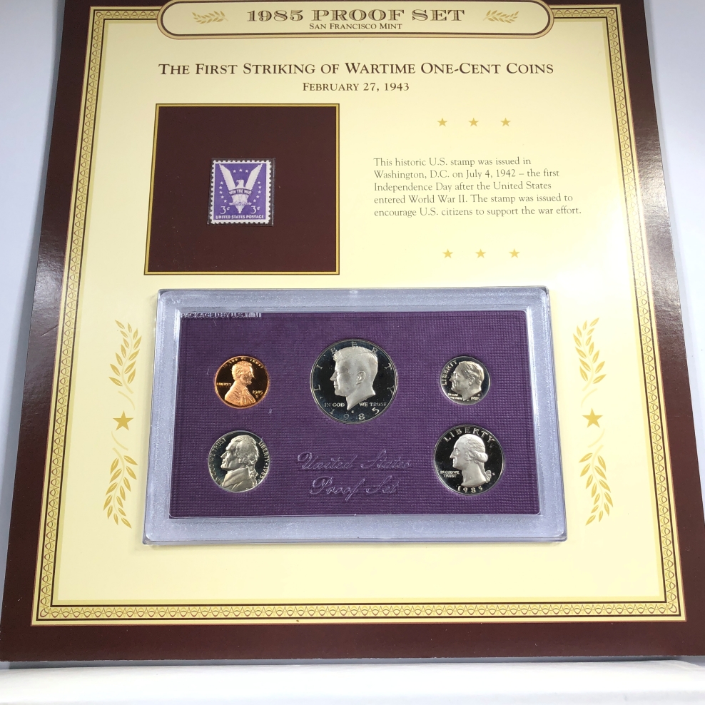 1985 United States Mint Proof Set Plus 1942 Commemorative Stamp*Custom Holder on Story Board
