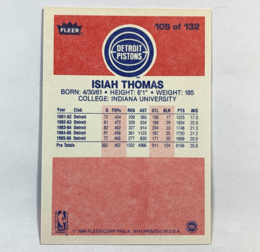 1986 Fleer Isiah Thomas Rookie Trading Card in Protective Sleeve High Grade