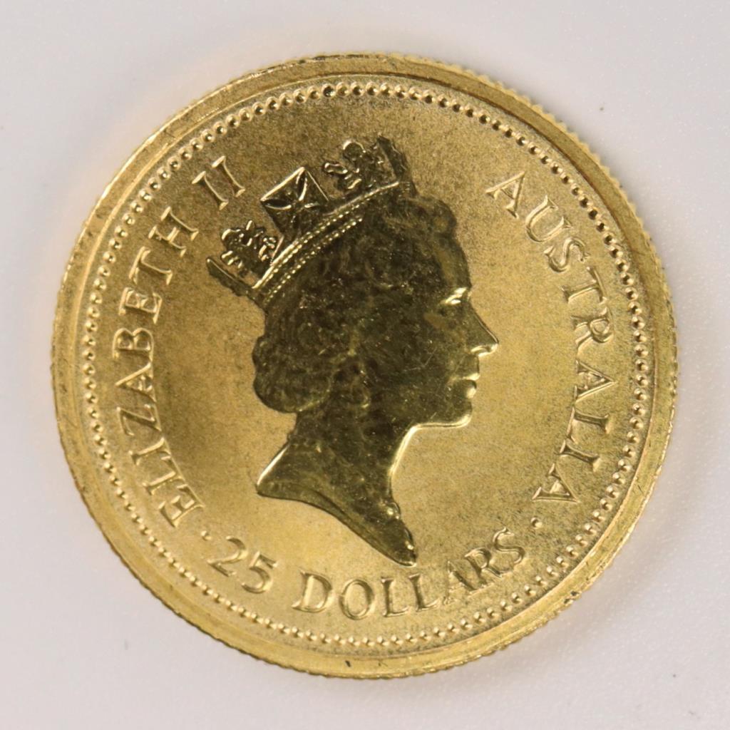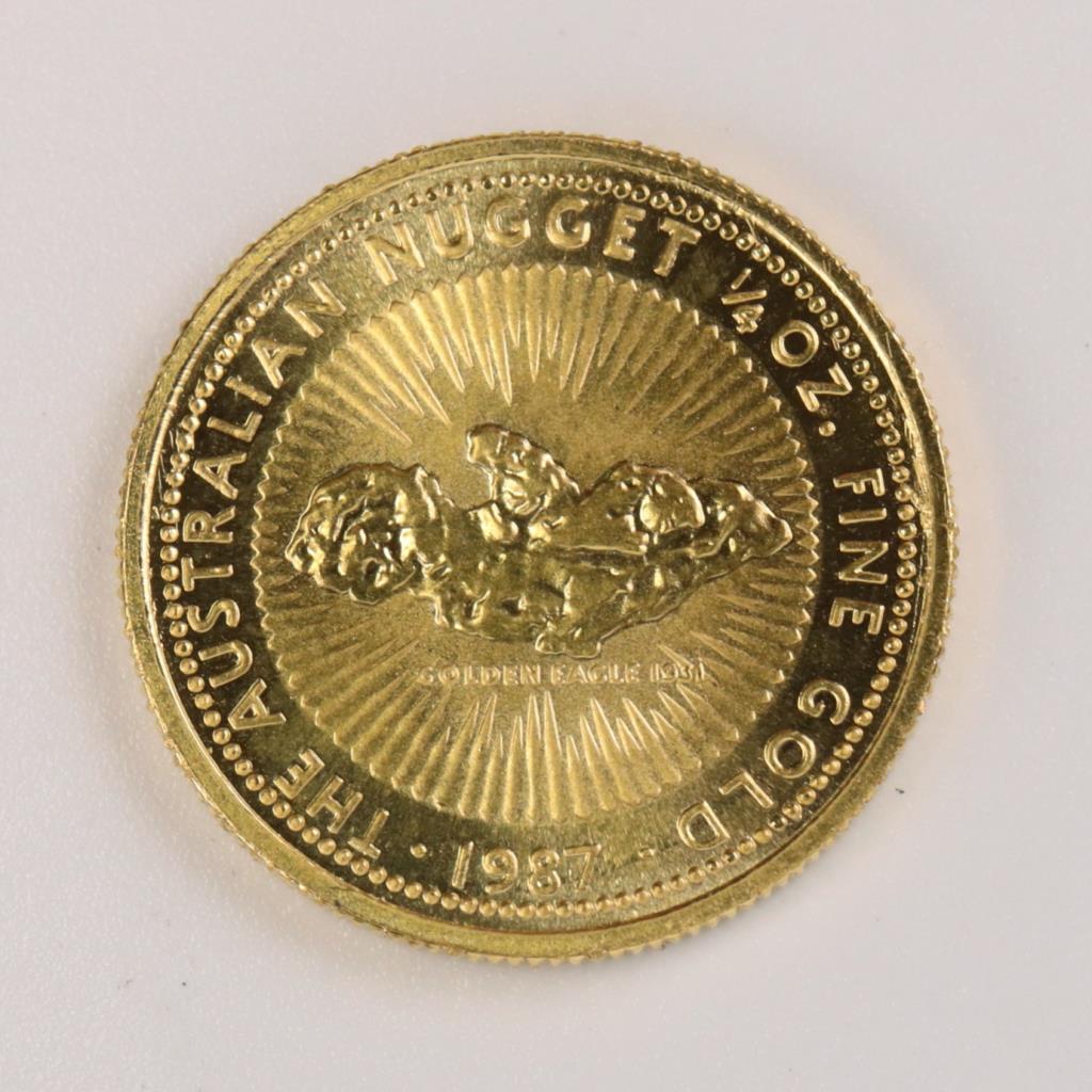 1987 Australian Golden Eagle Nugget Fine Gold 25 Dollar 1/4 Oz. Coin