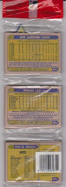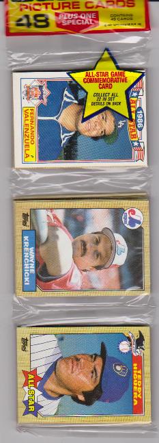 1987 Topps Baseball 49 Card Rack Pack w/ Fernando Valenzuela On Front