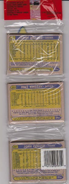 1987 Topps Baseball 49 Card Rack Pack w/ Wally Joyner On Front
