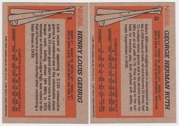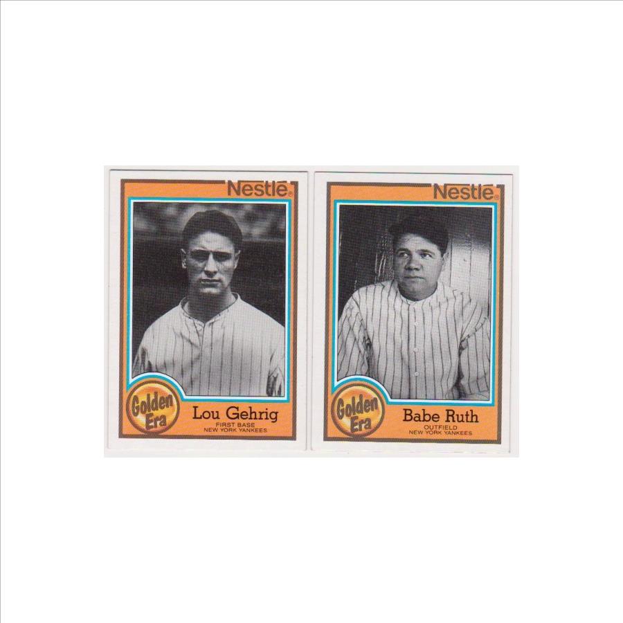 1987 Topps Nestle Babe Ruth #5 + Lou Gehrig #1 Card Pair - HOF'ers