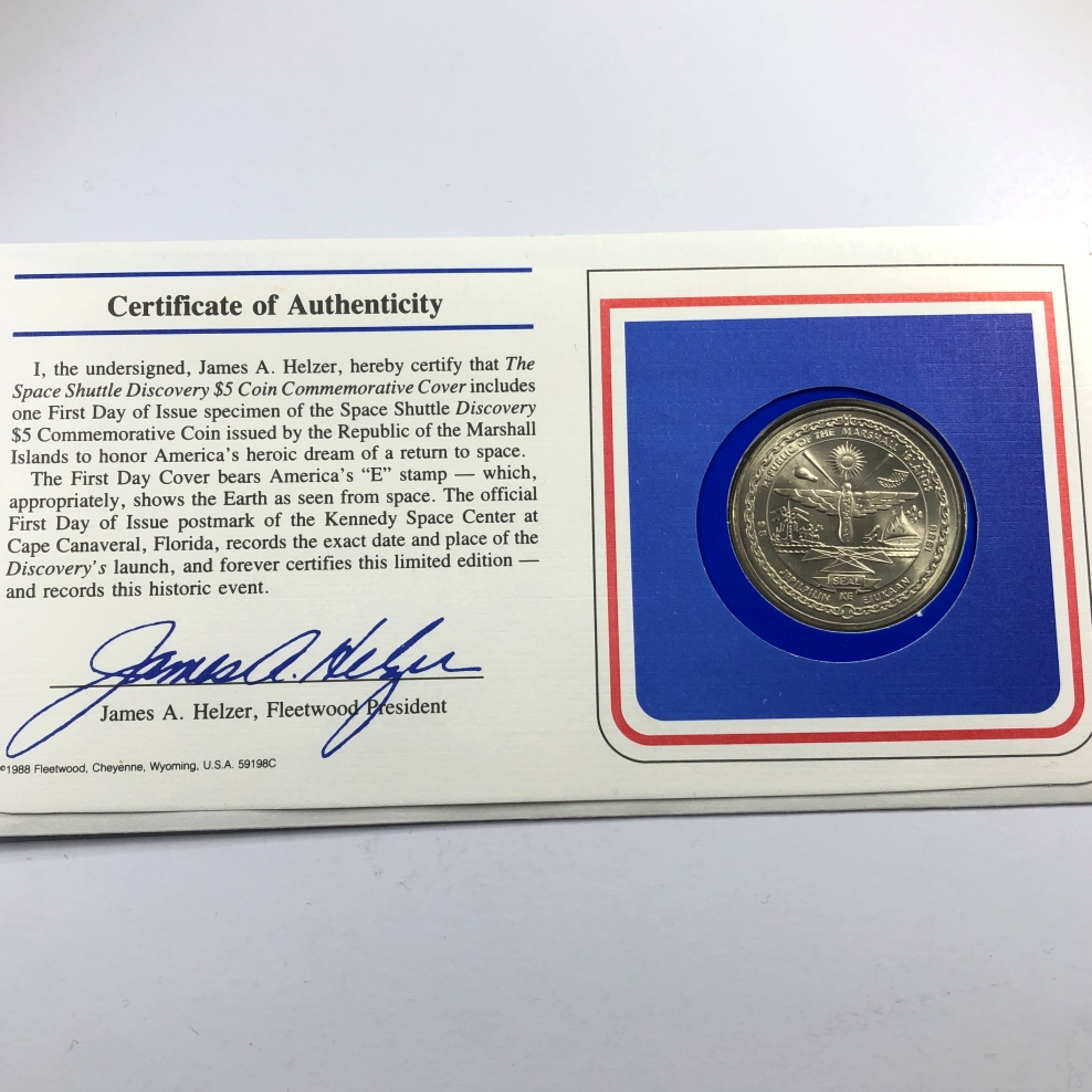 1988 Marshall Islands $5 Commemorative Coin*Space Shuttle Discovery*Coin Plus Stamp on New FDC