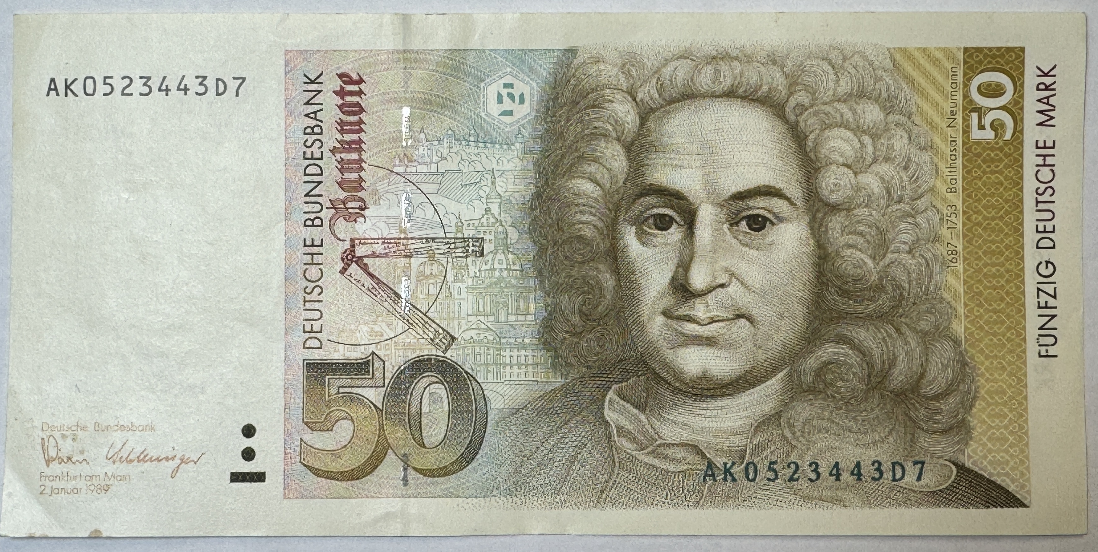 1989 Federal Republic of Germany 50 Deutsche Mark Balthasar Neumann Commemorative Note
