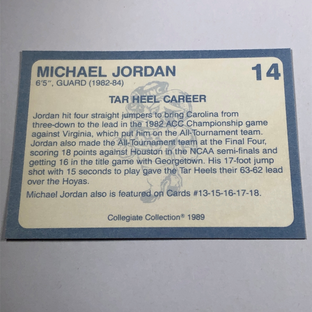 1989 MICHAEL JORDON Trading Card*North Carolina Tar Hell Career*Guard