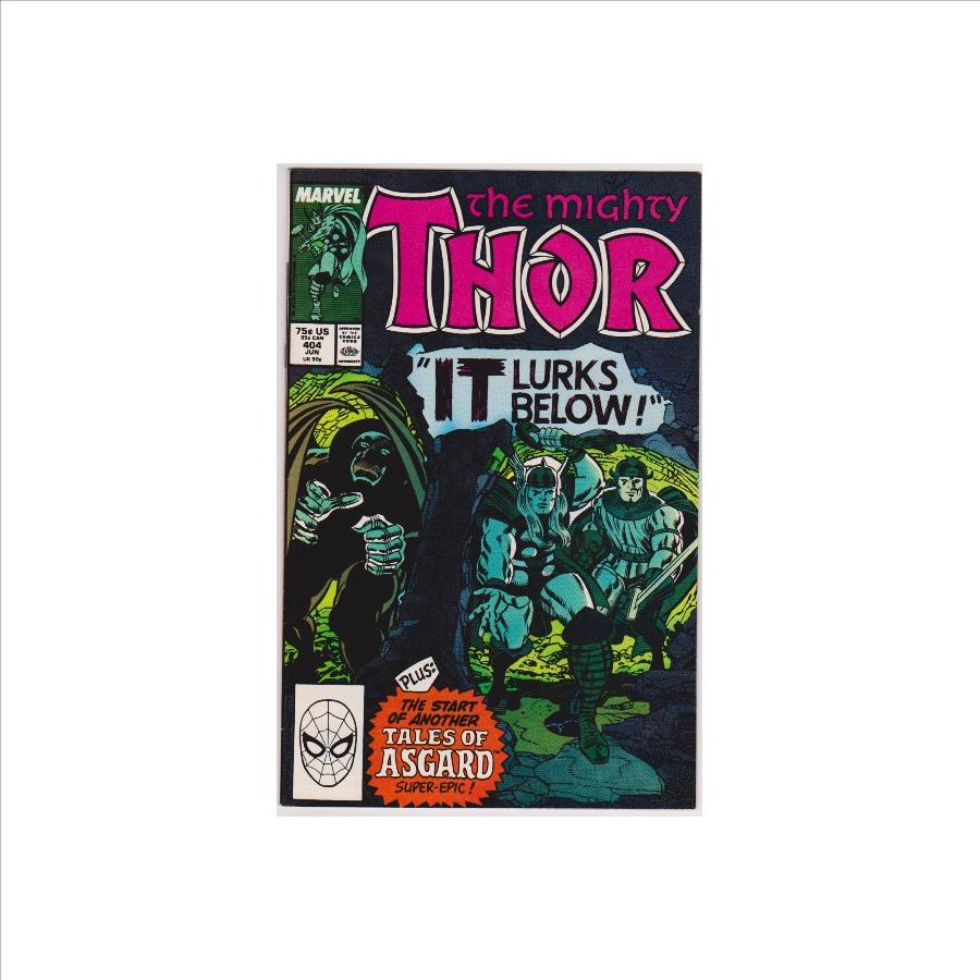 This is an authentic 1989 Marvel Comics THE MIGHTY THOR #404 issue.  It has wear including some small light bends along the binding, but is in approximately Excellent overall condition.  This is an original 37 year old issue of this popular Marvel Comics series.