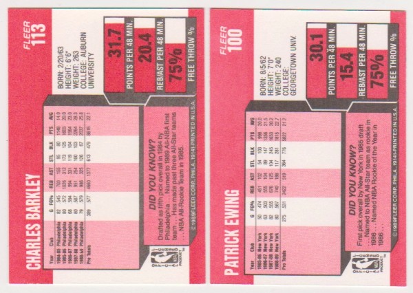 1989-90 Fleer Charles Barkley #113 + Patrick Ewing #100 Card Pair - HOF'ers