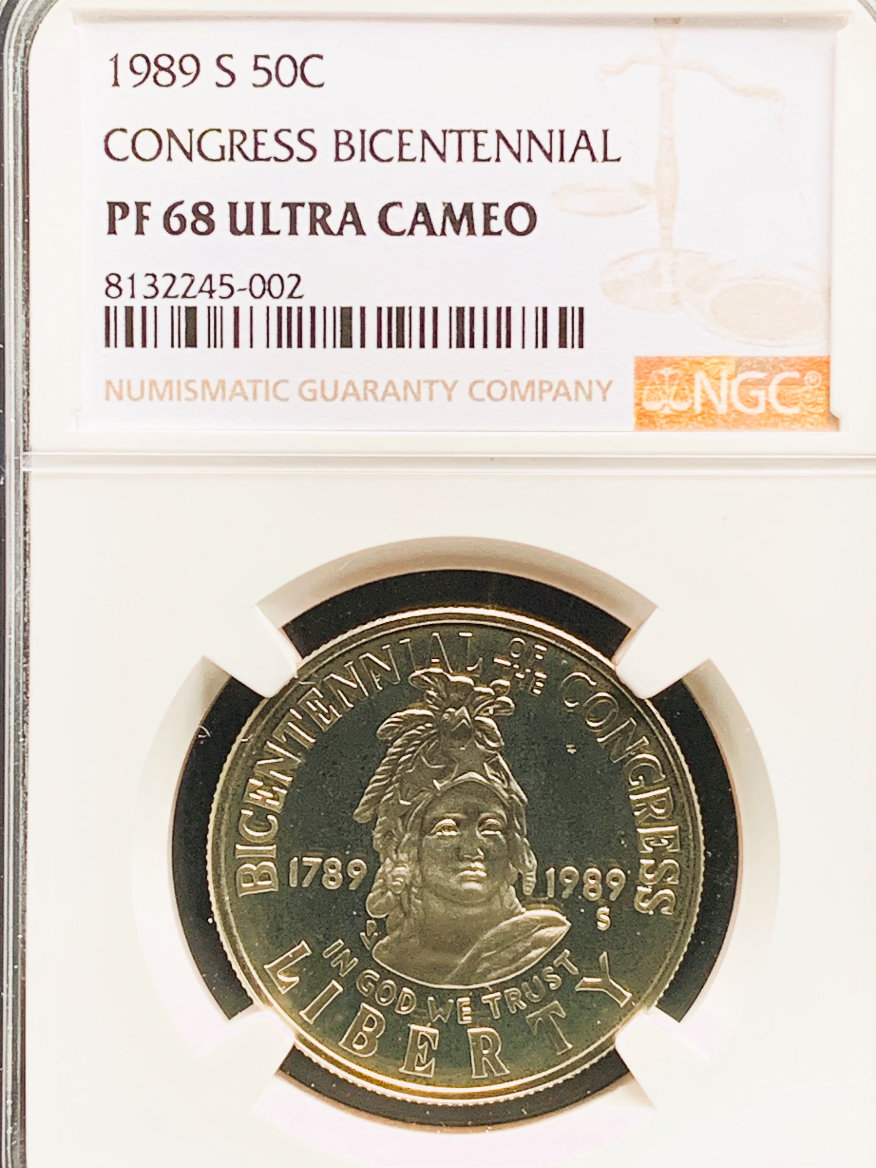1989-S CONGRESS BICENTENNIAL, NGC GRADED PF 68 ULTRA CAMEO IN THE SLAB GEM COIN