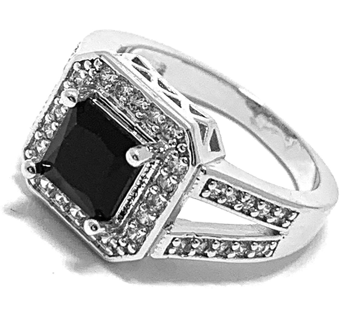 $199 Retail 3.50ctw Black Spinel & Diamonique Diamond Ring Size 7