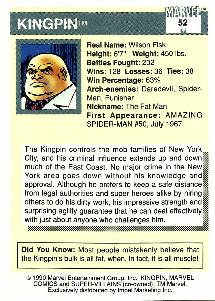 1990 Marvel Impel Kingpin Super-Villains Trading Card #52