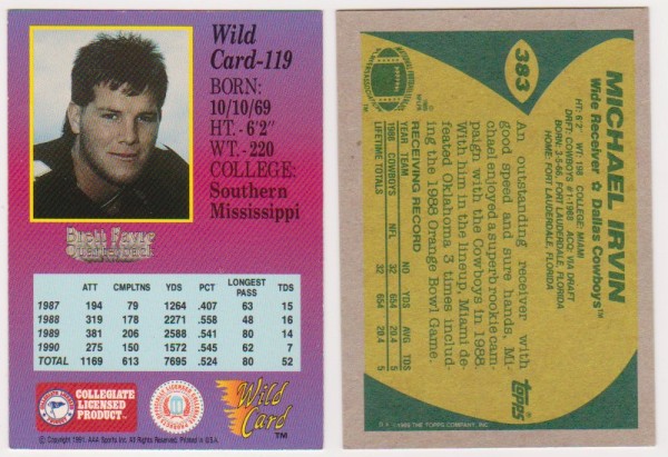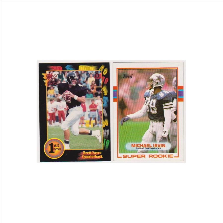 1991 Wild Card Brett Favre #119 + 1989 Topps Michael Irvin #383 Rookie Card Pair