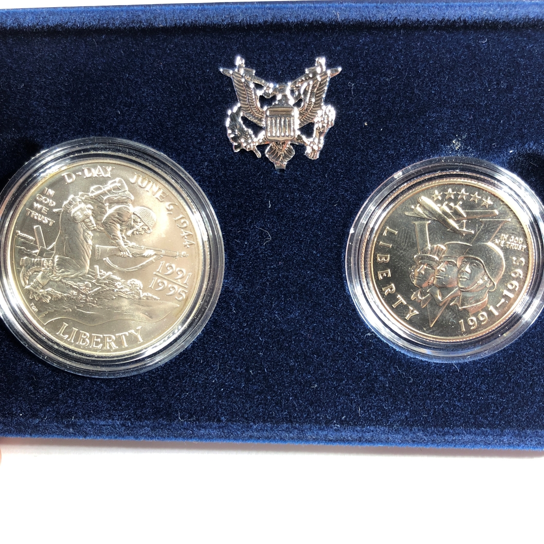 1991-1995 World War II 50th Anniversary Uncirculated Silver Dollar and Clad Half Dollar *in Original Box