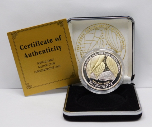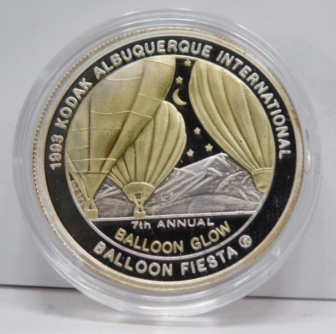 1993 Albuquerque Kodak International Balloon Fiesta - 1 oz. .999 Fine Silver with 24K Gold Highlights - 7th Annual Balloon Glow - Numbered COA and Gift Box with Original Cover Box