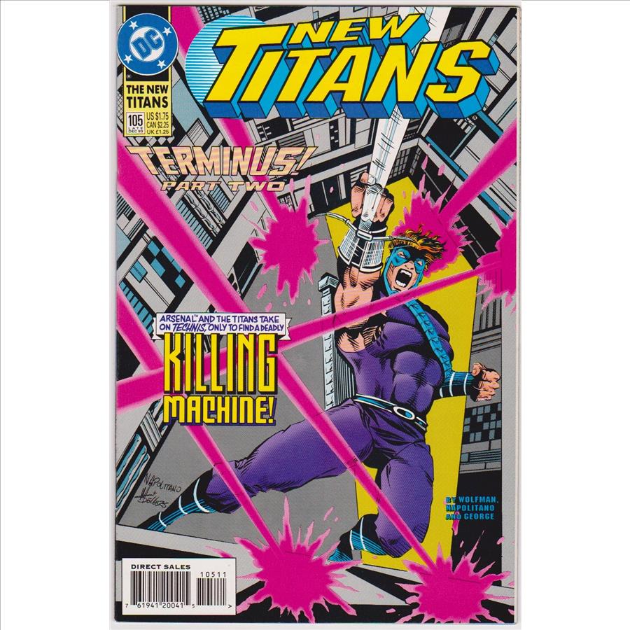This is a 1993 DC Comics THE NEW TITANS #105 issue.  It has light wear, but is in approximately Excellent overall condition.  This is an original 32 year old issue of this DC Comics series.