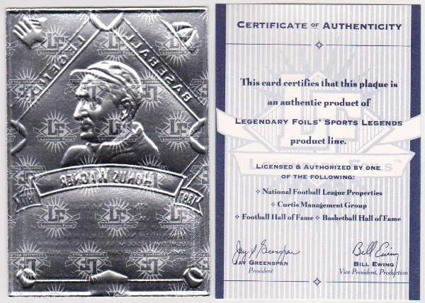 1993 Legendary Foils Honus Wagner Sculpted Card With COA