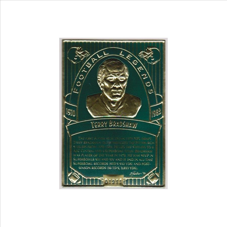 This is a 1993 Legendary Foils Terry Bradshaw 3x5 card.  This sculpted Bradshaw card comes with the original coa.  It was stamped with serial #1911.  This is a sharp low production item of this legendary Hall of Famer.