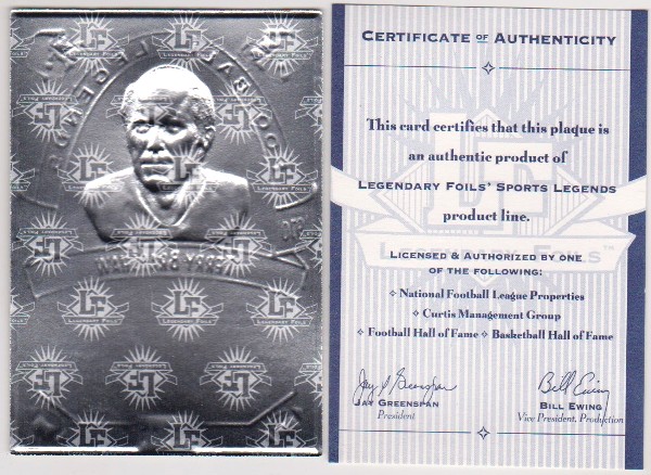 PropertyRoom.com's trusted merchant, Sports Collectibles, presents this online auction for the above 1993 Legendary Foils Terry Bradshaw Sculpted Card With COA.