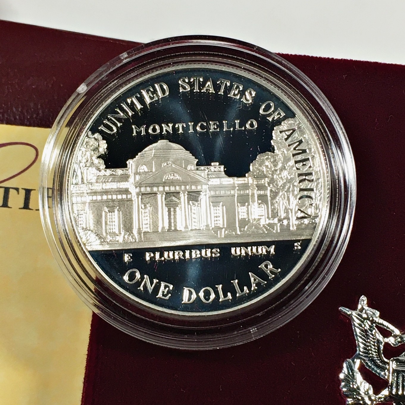 1993-S Thomas Jefferson 250th Anniversary Commemorative Proof Silver Dollar*In Original Packaging