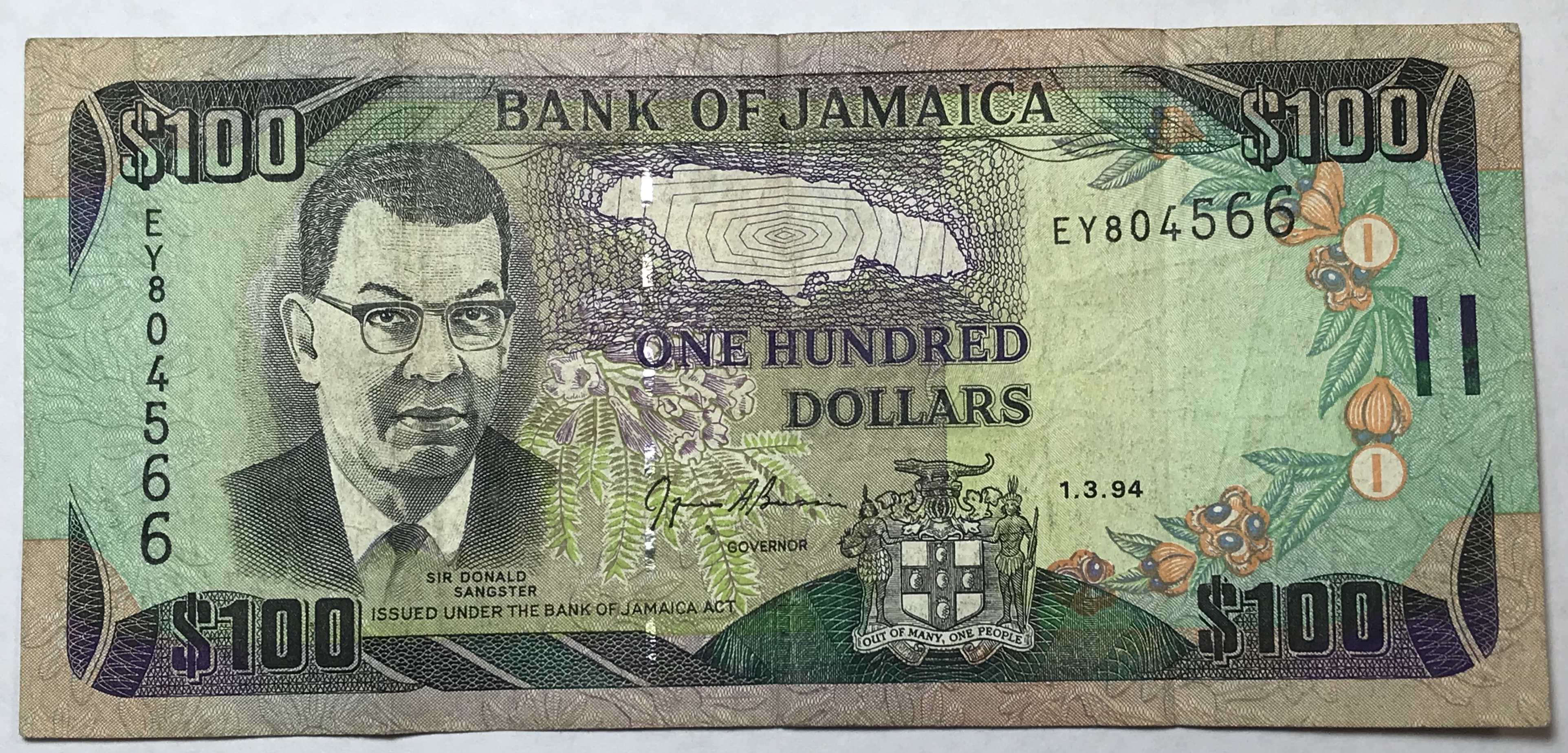 1994 $100 Bank of Jamaica Note
