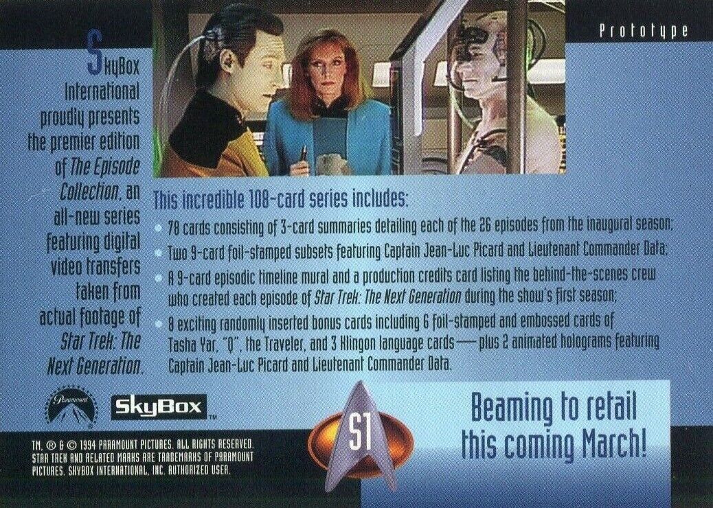 1994 Skybox Star Trek Next Generation The Episode Collection Season 1 Prototype Card S1