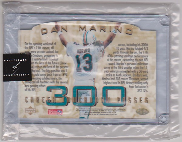 1994 Upper Deck Authenticated Dan Marino 300 Touchdown Passes 3.5x5 C-Card